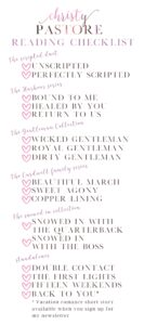In this short novella series, all the stories feature characters from previous books. The Snowed In stories are bite-sized steamy holiday treats filled with heat, heart, and humor. They are short and sweet. This is the suggested reading order to enjoy the total snowy magical reading experience.